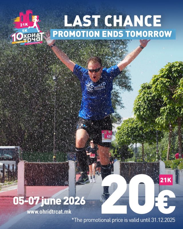 И да, не заборавајте дека јубилејната цена за полумаратон (21K) изнесува 20€ и важи до 31.12.2025 – ПРИЈАВИ СЕ и биди дел од јубилејното и досега најспектакуларното издание! ![]()